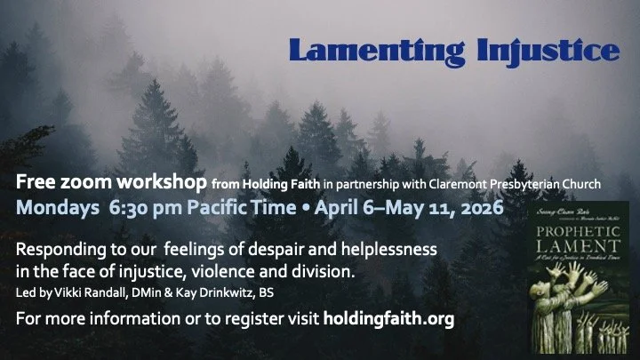 For justice-minded Christians at this moment in American history, these are times of great pain and even despair. We have much that we are holding. This six-week workshop will dig into the biblical pattern of lament, as a way of centering ourselves in God’s love and presence during anxious times. This study is not intended to replace the courageous work being done in non-violent resistance to injustice, but rather to come alongside with a spiritual resource to build resilience.